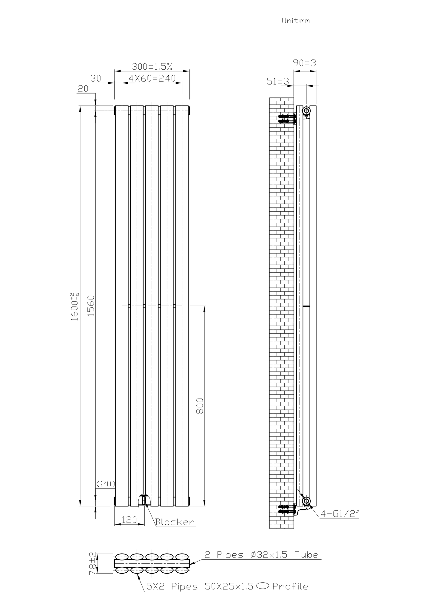 Crafted with precision, to EN442 and CE standards, the radiator features a striking White finish that effortlessly complements any interior decor. The oval vertical tubes not only enhance the radiator's aesthetic appeal but also provide efficient heat distribution, ensuring a cosy atmosphere in your living spaces.