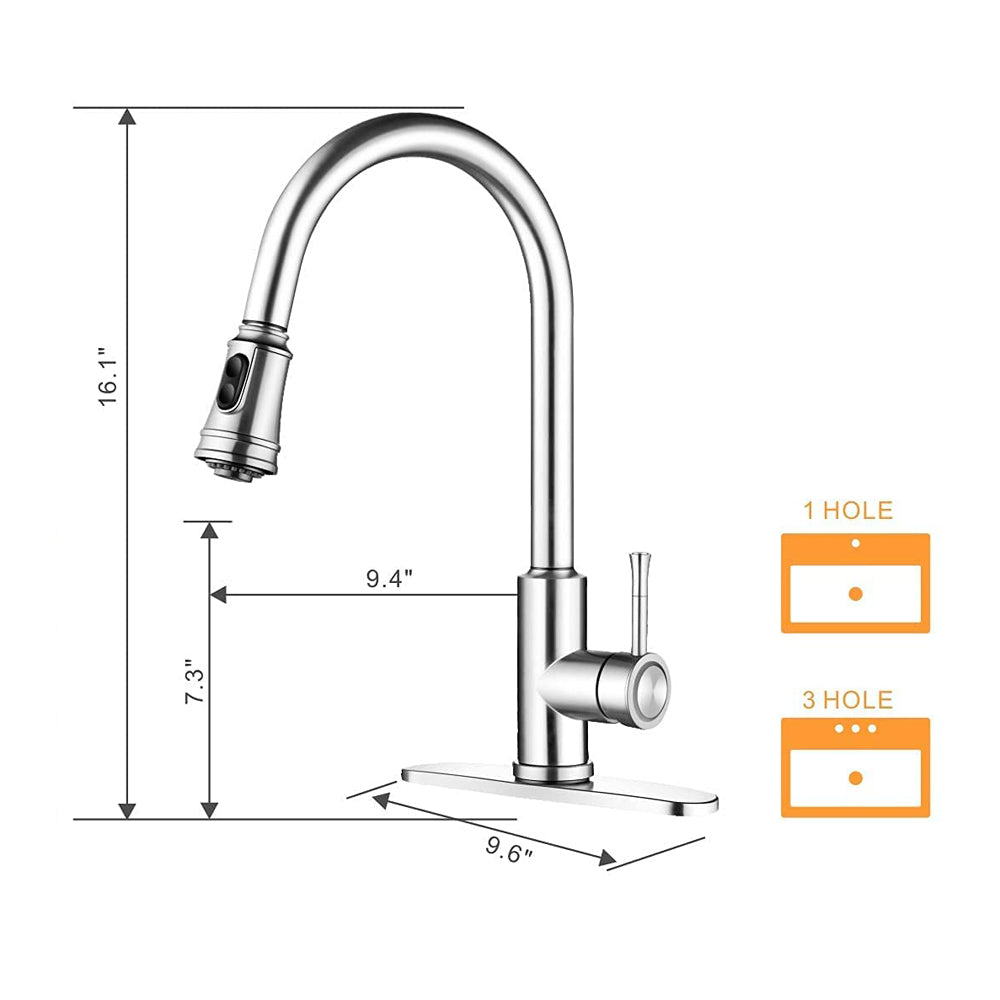 Stainless Steel Kitchen Faucet 360 Flexible Pull Out Hose Dual Spray Chrome Tap Mixer Model KPY-38216